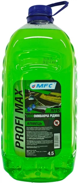 Омыватель стекол Profi Max Можжевельник Лето 4,5 л — летняя стеклоомывающая жидкость для эффективной очистки лобового, боковых и заднего стекла автомобиля. Быстро удаляет пыль, дорожную грязь, следы насекомых и маслянистые загрязнения, не оставляя разводов.